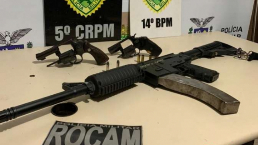 As armas utilizadas pelos assaltantes, assim como o veículo usado por eles e o carro da vítima, foram encaminhados à Delegacia de Polícia Civil.