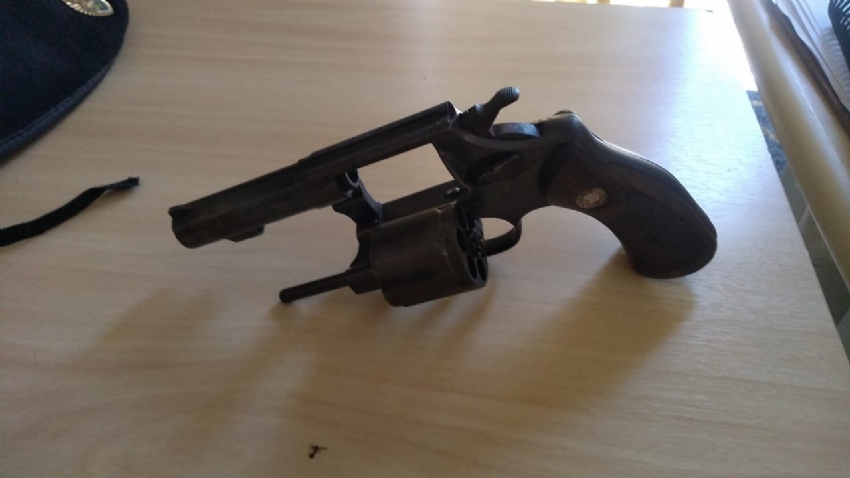 No local, a vítima de 59 anos, relatou que seu enteado de 38 anos a agrediu com o cabo de um revólver. O autor estaria embriagado e após as agressões fugiu da residência. No local, o pai do acusado entregou à PM um revólver calibre 32.