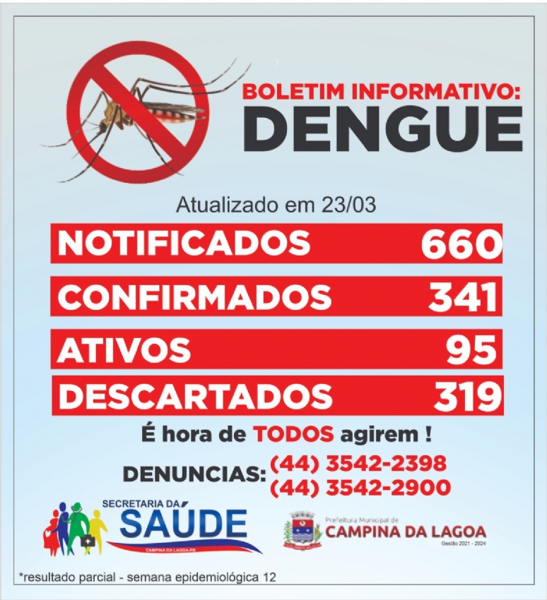 Segundo o Boletim da Secretaria Municipal de Saúde divulgado também no dia de ontem, o município notificou 660 casos, 319 foram descartados e 341 confirmados, sendo que destes 95 estão ativos em tratamento. Segundo os dados divulgado nesta terça-feira os números aumentaram significativamente em 40% em relação ao boletim da semana anterior.
