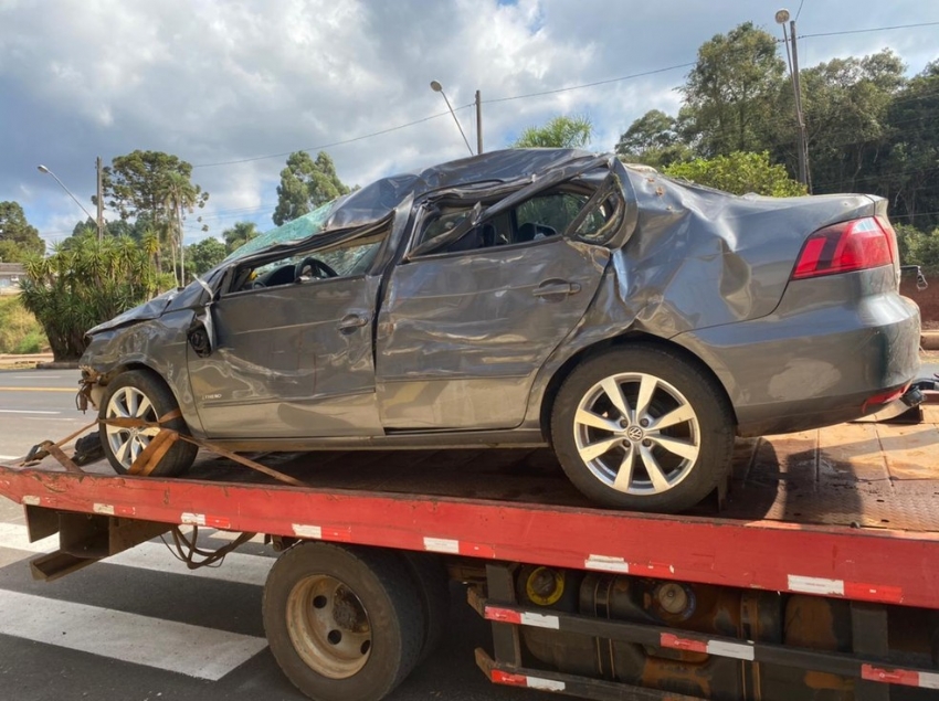 O motorista sofreu ferimentos leves e foi levado para a delegacia depois de receber atendimento médico em um hospital. O carro foi parar em um barranco.