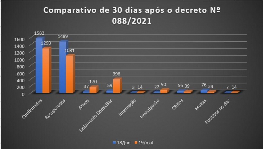 Após um mês, os números são satisfatórios segundo a secretaria de saúde, houve uma redução em média de 80% nos casos ativos, em investigação e de internamentos. Também assim com os números de novos casos que caíram drasticamente em comparação ao mês anterior.