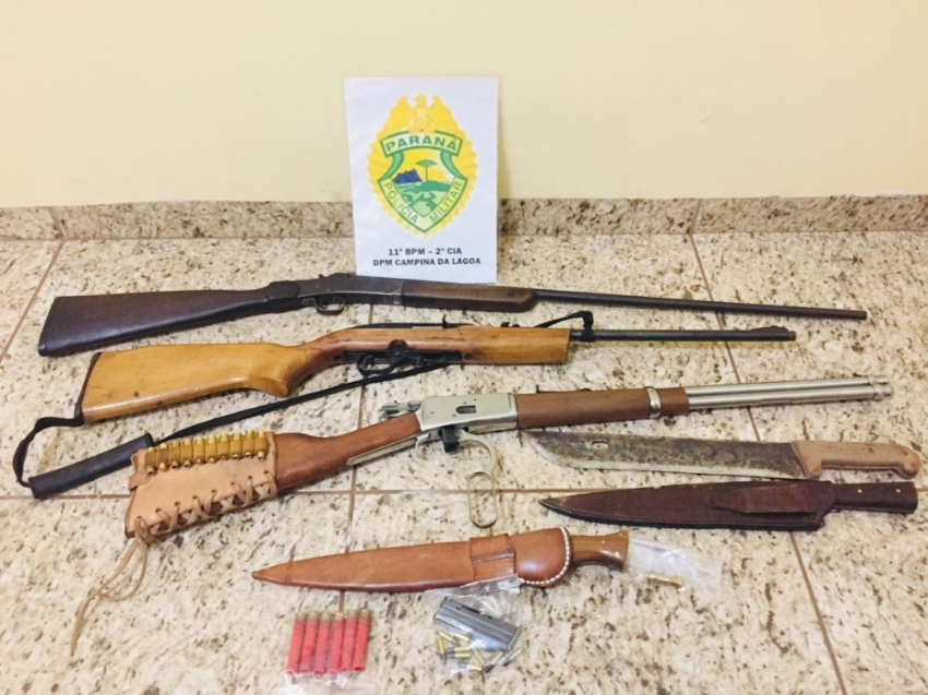 A primeira apreensão ocorreu no fim da tarde de sexta-feira, em Campina da Lagoa, após denúncias de disparos de arma de fogo. Na ocasião, três homens foram detidos e encaminhados à delegacia. Com eles os policiais apreenderam três armas longas.
