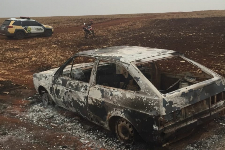 A Policia Militar de Campina da Lagoa foi acionada por volta das 6h30 da manhã a comparecer na Estrada da Herveira, onde havia um carro incendiado em meio a uma lavoura.