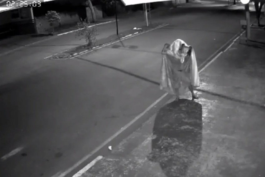 A tentativa frustrada de furto aconteceu na madrugada desta segunda-feira (20), às 02h24min. A cena inusitada foi gravada por câmeras de segurança de uma empresa de Fênix. Uma pessoa, usando um lençol branco sobre o corpo, tenta quebrar a porta de blindex. O alvo foi um mercado da cidade.