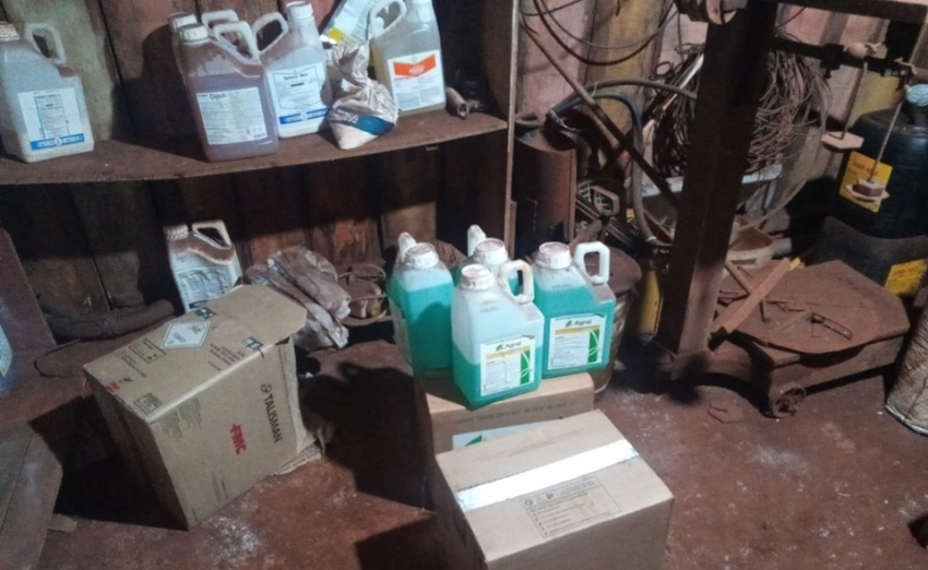 Após checarem o barracão foi constatado que foram roubado 10 unidades do defensivo Egon (galão 20 litros), 4 unidades de Agrau (galão de 5 litros), Talisman 15 unidades (galão de 5 litros), 6 unidades Engeo (galão de 5 litros), 1 unidade de Abacus (galão 5 litros).