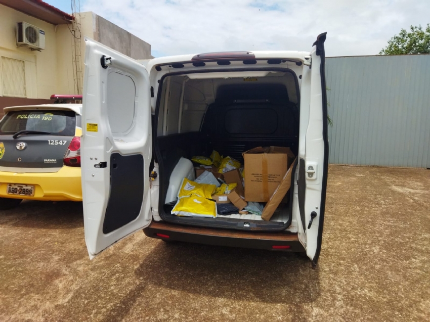 O veículo estava carregado com mercadorias diversas vendidas pela internet quando foi interceptado por dois bandidos em uma motocicleta. Momentos depois a PM conseguiu localizar a Fiorino em uma estrada rural.