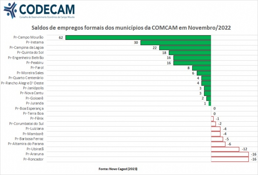 Os municípios com saldos negativos são; Araruna, Mamborê e Quarto Centenário.