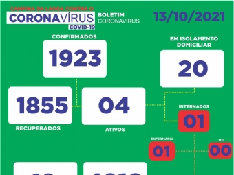 | O boletim Coronavírus desta quarta-feira (13), não registrou nenhum novo caso positivo de Covid-19 | |||
