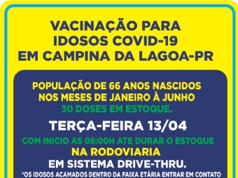 | Campina da Lagoa iniciará imunização em idosos com 69 anos na próxima quarta-feira (31) | |||
