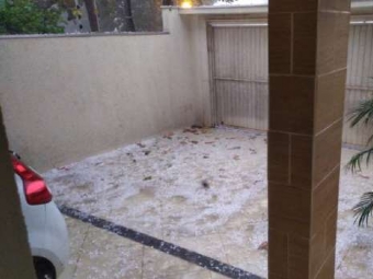 | Forte chuva de granizo destrói casas em Santa Tereza do Oeste | |||